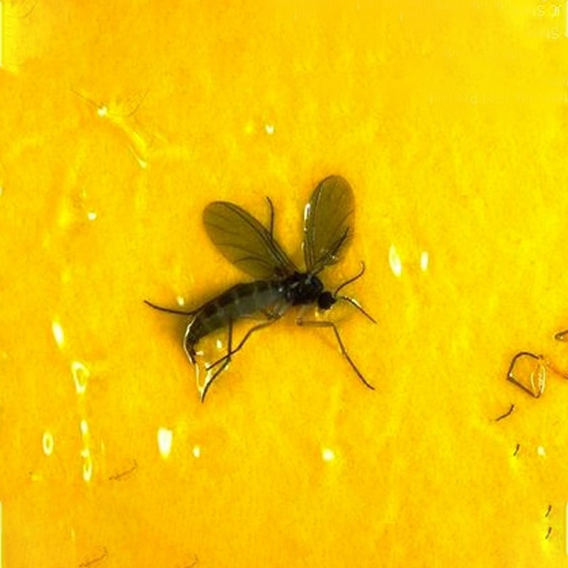 Fungus gnats are small flies that infest soil, potting mix, other container media, and other sources of organic decomposition. Their larvae primarily feed on fungi and organic matter in soil, but also chew roots and can be a problem in greenhouses, nurseries, potted plants and interior plantscapes.